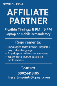 Newtech India is hiring for a part-time Product Advisor cum Promoter role that you can do from home. If you’re located near Yeshwanthpur, Bangalore, and are fluent in Gujarati and English language, we’d love to hear from you. You’ll work from 5 PM to 9 PM daily and require only a laptop or mobile.