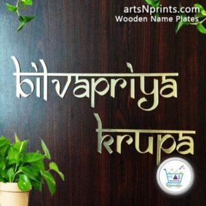 Add a touch of tradition and elegance to your home entrance with the “Bilvapriya Krupa” premium wooden name plate, beautifully designed by artsnprints.com.